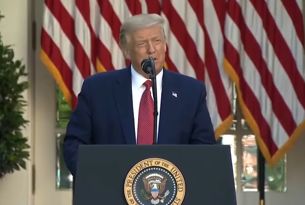14日,特朗普在白宮玫瑰園發表講話 來源:視頻截圖