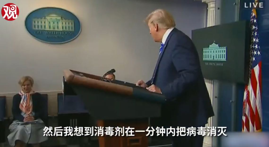 特朗普著名的“人體注射消毒劑殺新冠”言論 視頻截圖