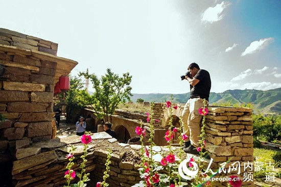 內蒙古呼和浩特市清水河縣老牛灣村的一户農家樂院裏,古樸的涼亭、特色的窯洞映入眼簾,背靠着風光旖旎的老牛灣,農家樂吸引着遊客駐足拍照留念。