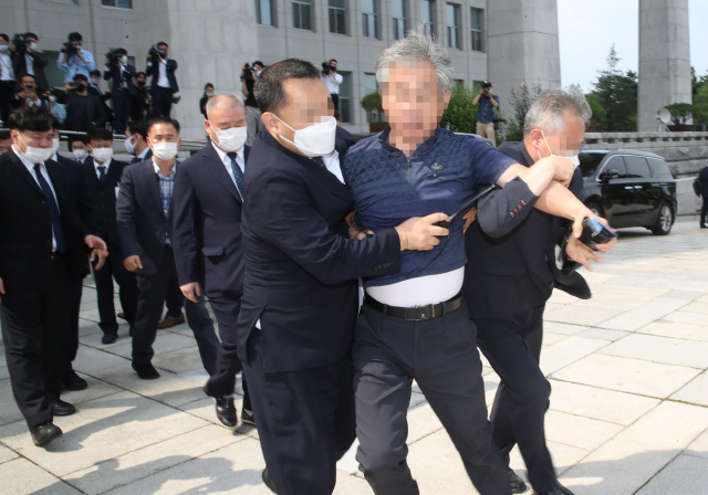 事情發生於當天下午3點半,文在寅剛剛結束在國會的第二十一屆國會開幕式演講離開議事堂,此時站在主樓階梯上的鄭某人脱下自己的鞋子朝文在寅扔去,大喊:“偽善者文在寅離開韓國!”