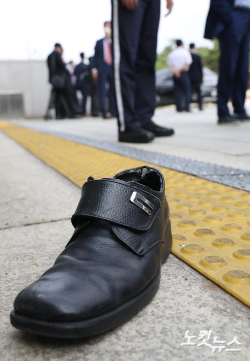 【編譯/觀察者網 李煥宇】據韓聯社7月16日報道,當天訪問國會的韓國總統文在寅遭人扔鞋抗議。