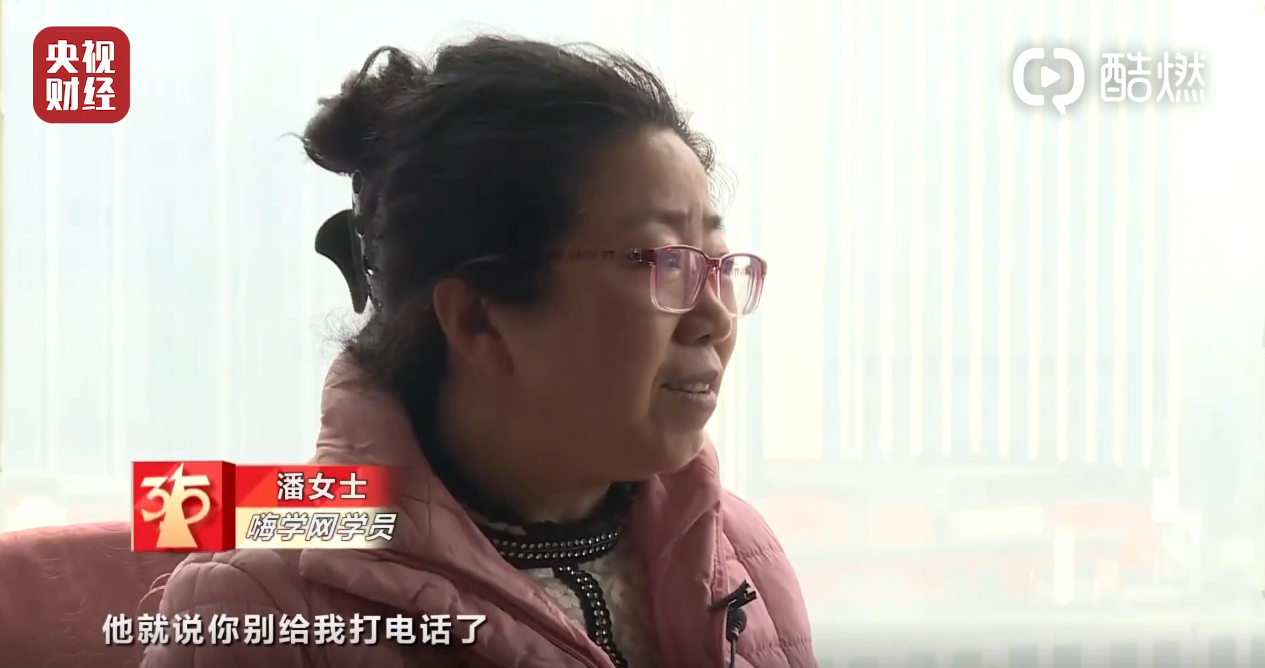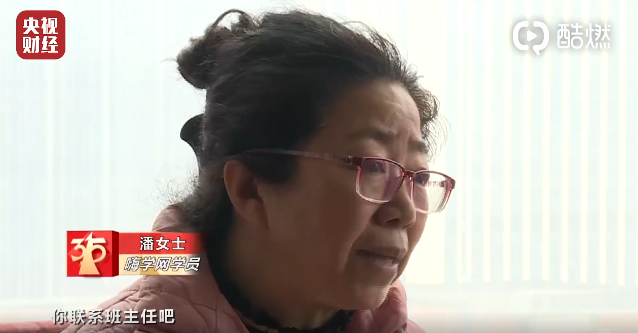 實際上不少嗨學網的學員都陷入了交錢容易退錢難的境地, 3·15晚會的郵箱就收到了數百封投訴嗨學網的郵件。一些學員告訴記者,在報名之前,嗨學網的銷售會給出各種承諾,什麼“保過班型,簽訂不過退費協議”“一科不過,100%保障退費”“100%保障順利報名”等等。記者調查發現,成交一單,嗨學網銷售可以拿到6%到13%的提成。在嗨學網入職培訓時,培訓師特別告誡新員工,在交錢時儘量不要引導學員查看《嗨學網服務協議》具體內容。有老員工們告訴記者,要特別注意溝通方式,不要通過公司官方系統留下證據:“在私人手機上説”“微信裏,用語音電話溝通”。一旦交了錢,當學員們發現上當受騙要求退錢時,嗨學網的投訴部門則會拿出協議,否定之前銷售們的各種口頭承諾。