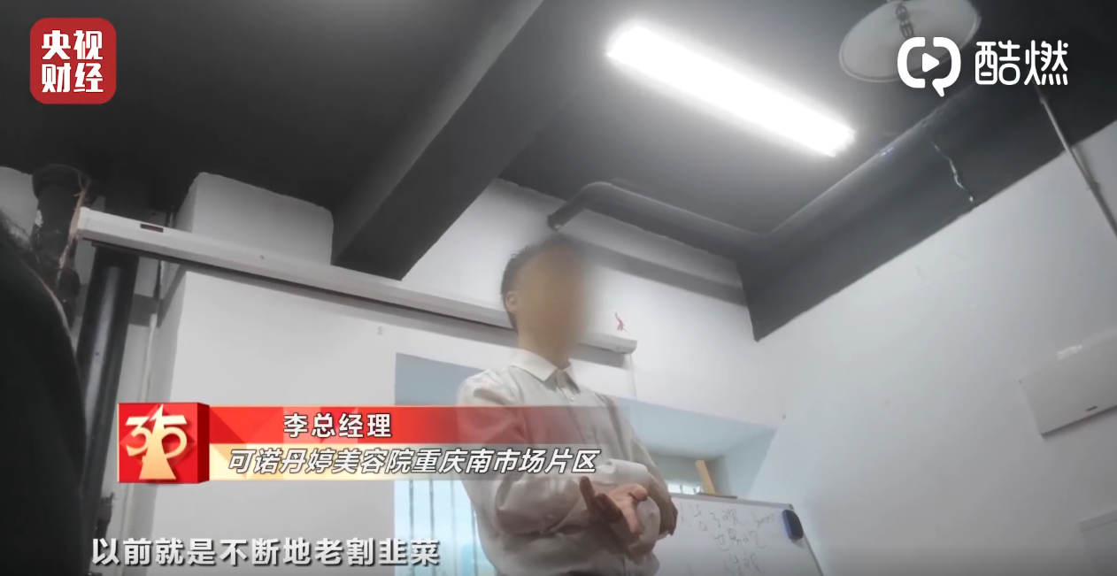 同時,為了防止顧客事後反悔,美容院會以格式條款或其它各種藉口,拒絕消費者的退款請求。這樣一來,即便顧客事後意識到自己遭遇套路上當受騙,也很難把錢要回來。一位員工告訴記者,“我們這裏就這樣子的,為了錢不擇手段。”