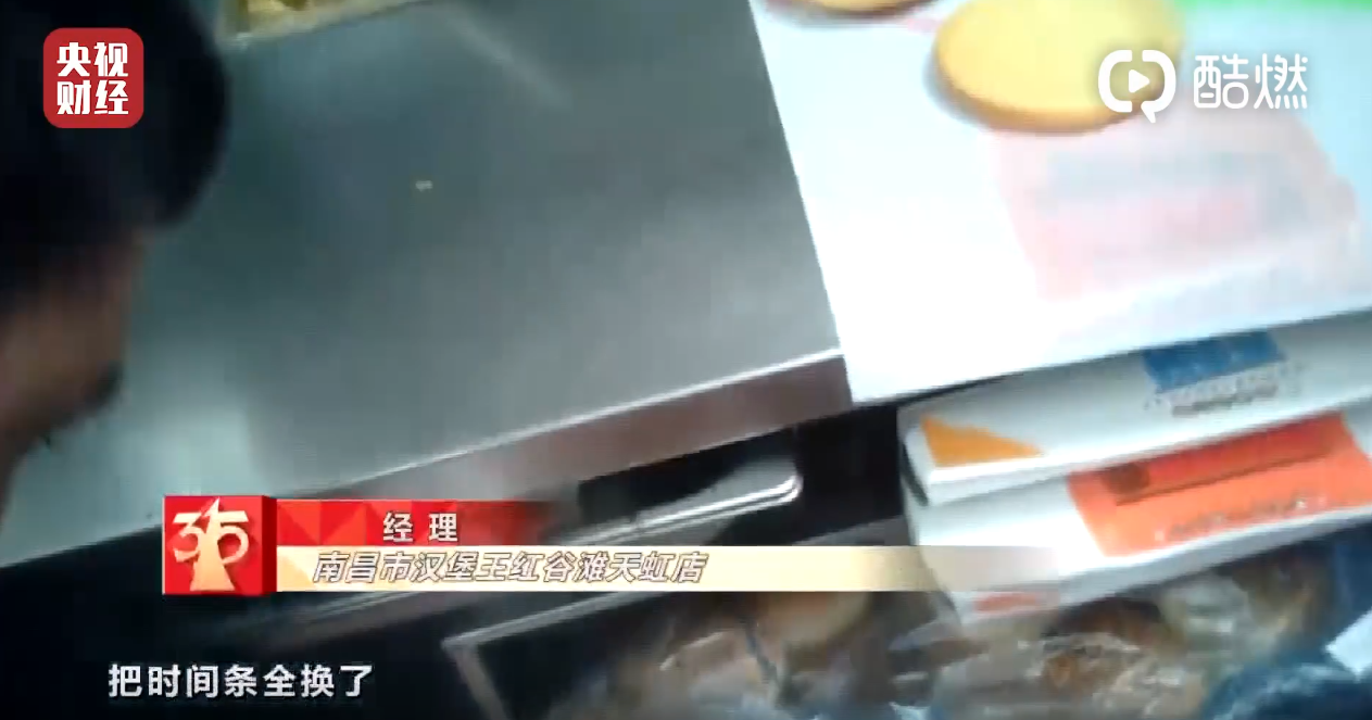 隨着調查的深入,記者的發現更加令人震驚。當班經理發現麪包到期後,很自然地吩咐員工更換標籤。員工將這批漢堡上舊的標籤撕掉,換上了新的標籤。第二天記者發現,這批過了保質期的麪包被陸續拿出來,做成漢堡賣給了顧客。即便到了食物容易發黴變質的夏天,保質期照改不誤。