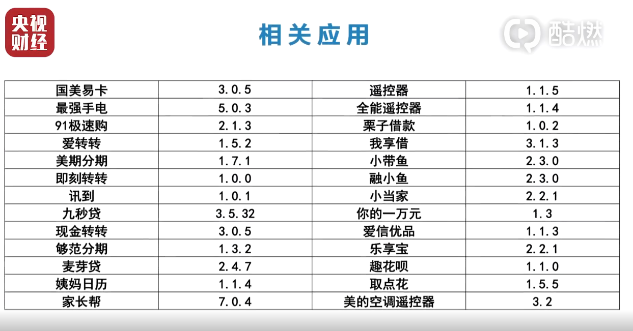 技術人員檢測了50多款手機軟件,這些軟件中分別含有上海氪信信息技術有限公司和北京招彩旺旺信息技術有限公司兩家公司的SDK插件,這兩個插件,都存在在用户不知情的情況下,偷偷竊取用户隱私的嫌疑,涉及國美易卡、遙控器、最強手電、全能遙控器、91極速購、天天回收、閃到、蘿蔔商城、紫金普惠等50多款手機軟件。