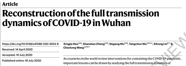 該研究由華中科技大學、美國哈佛大學的研究團隊聯合完成,題為“Reconstruction of the full transmission dynamics of COVID-19 in Wuhan(武漢COVID-19疫情全傳播動態重建)”,通訊作者為華中科技大學公共衞生學院流行病與衞生統計系王超龍教授和哈佛大學生物統計系終身教授、美國國家醫學院院士林希虹。