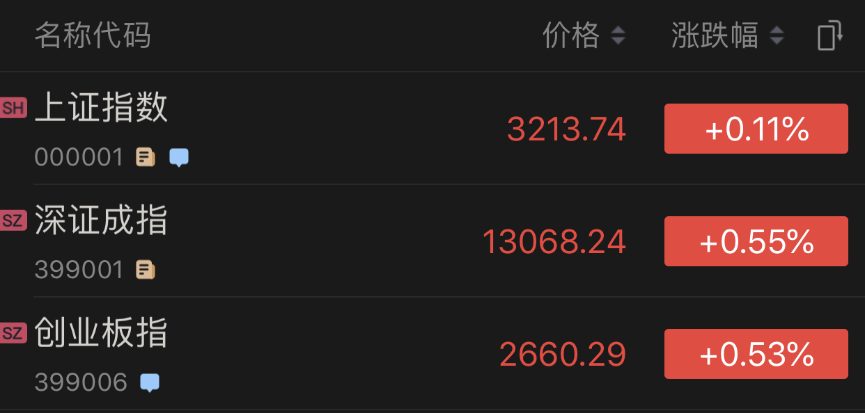 文章發佈後,今日三大指數集體高開。其中,滬指高開0.13%,深成指高開0.05%,創業板指高開0.5%。