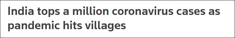 《印度斯坦時報》援引專家的預測説,印度未來累計病例從100萬例到200萬例可能只需要約21天時間。現在大家的關注重點應該轉向農村:因為農村地區沒有完善的醫療保健機制,卻容易成為新的疫情暴發點。