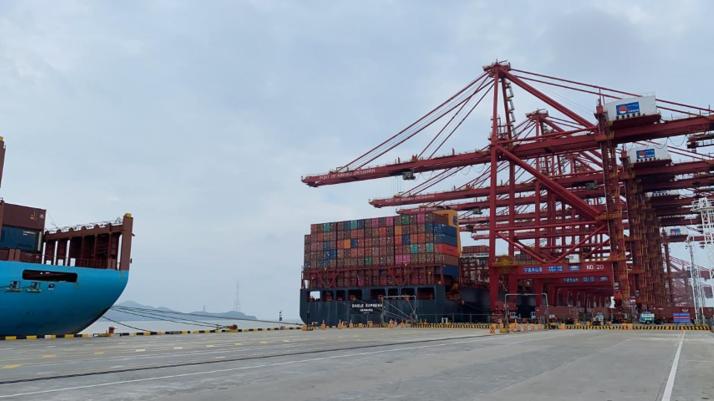 7月,寧波舟山港,一艘艘貨輪進出繁忙,行駛得又穩又快。又穩又快的還有中國對外開放的腳步。