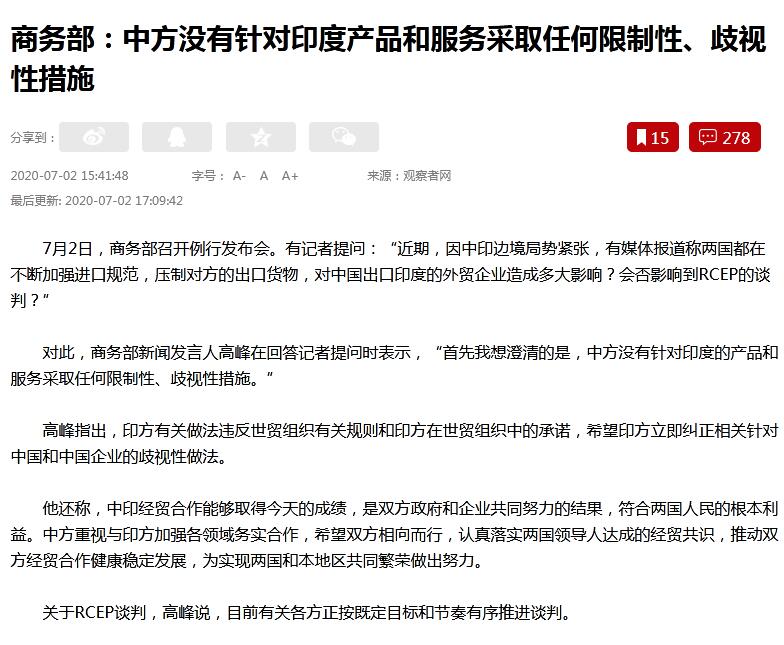 消息傳到印度國內引發軒然大波,莫迪在國內也遭受了巨大的政治壓力,其政府不久就宣佈禁止59個有中國投資背景的手機APP,由此在印度民間掀起新一輪抵制中國產品的浪潮。在我們關注中印邊境糾紛時,也不得不注意到印度國內日益高漲的經濟民族主義。