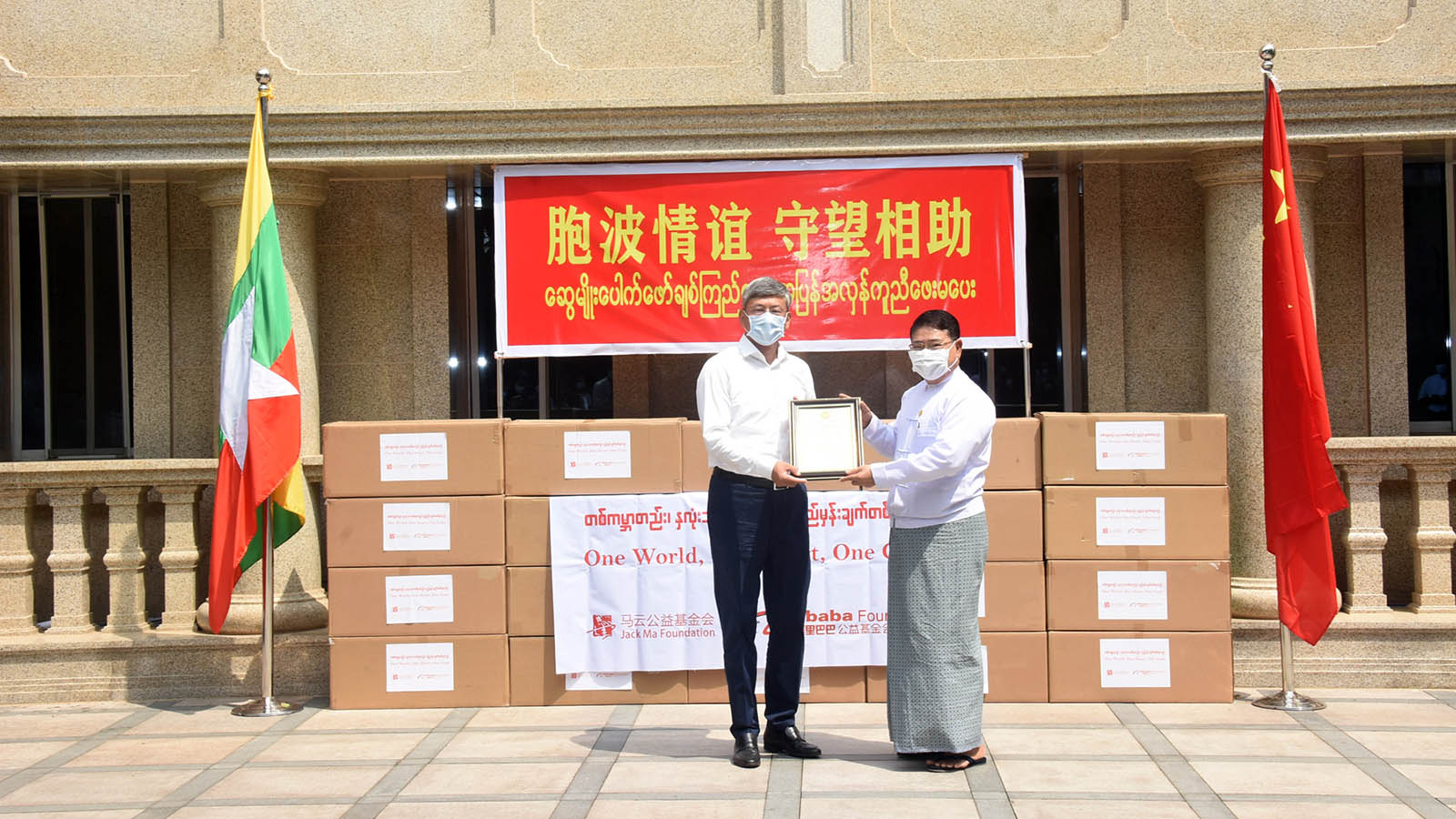 今年3月30日,中國駐緬甸大使館向緬衞生部門捐贈抗疫物資 圖自緬甸媒體