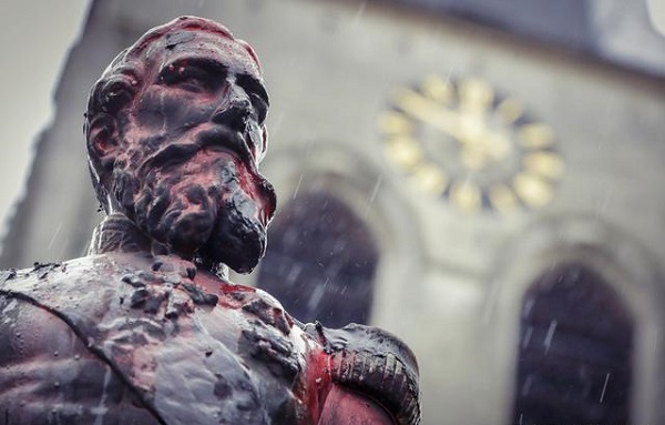 比利時國王利奧波德二世雕像被潑灑紅漆 圖片來源:網絡圖