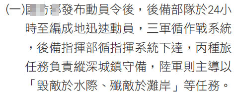 守備旅戰時動員時間只有24個小時,實際情況下,台軍不可能在一天中變出幾十個旅放在灘頭。