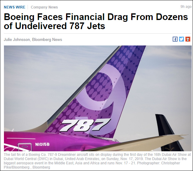 彭博社援引了美國著名航空博主烏雷斯·謝斯的博客,他認為停在兩個工廠裏的787客機總數在50架以上,比目前計劃交付的客機訂單多一倍。據該博主説,波音甚至已經開始將停不下的787客機運送到加利福尼亞州維克多維爾的一個沙漠停車場。