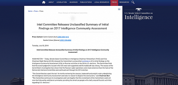 美國發布過多份關於俄羅斯干預總統大選的報告,上圖為參院情報委員會版本