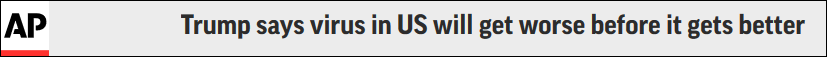 談到目前的疫情態勢,一向“嘴硬”的特朗普也開始透露出一絲“悲觀情緒”。他表示,在當前的美國新冠肺炎疫情形勢有所好轉之前,恐怕情況還會變得更加糟糕。