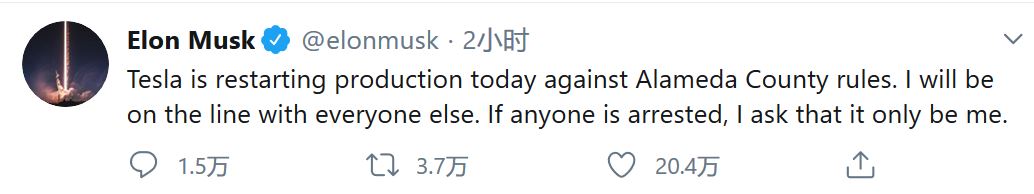 當地時間5月11日,馬斯克要求弗裏蒙特工廠立即復工,“要抓就抓我”