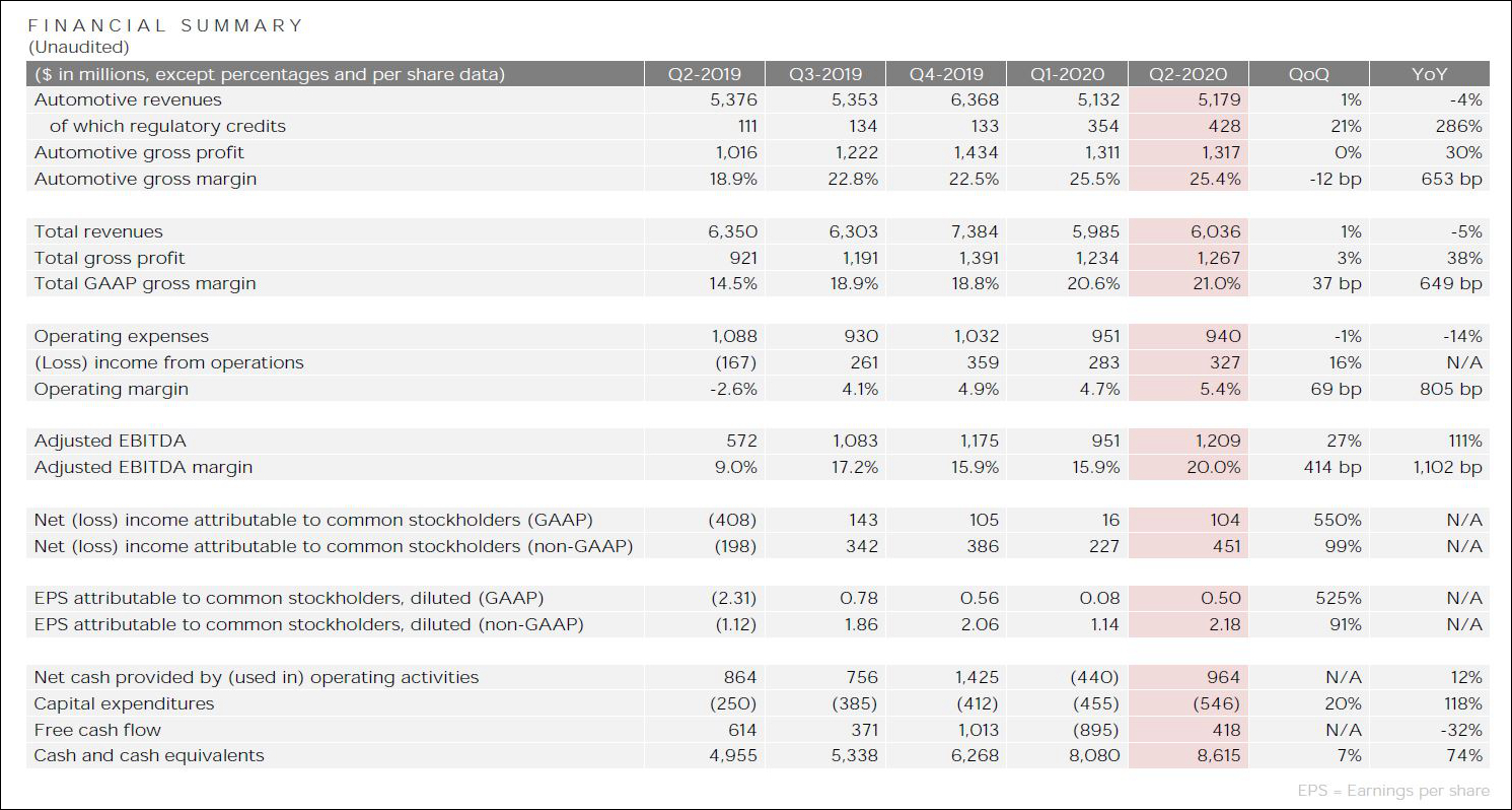 特斯拉2020年Q2業績報告
