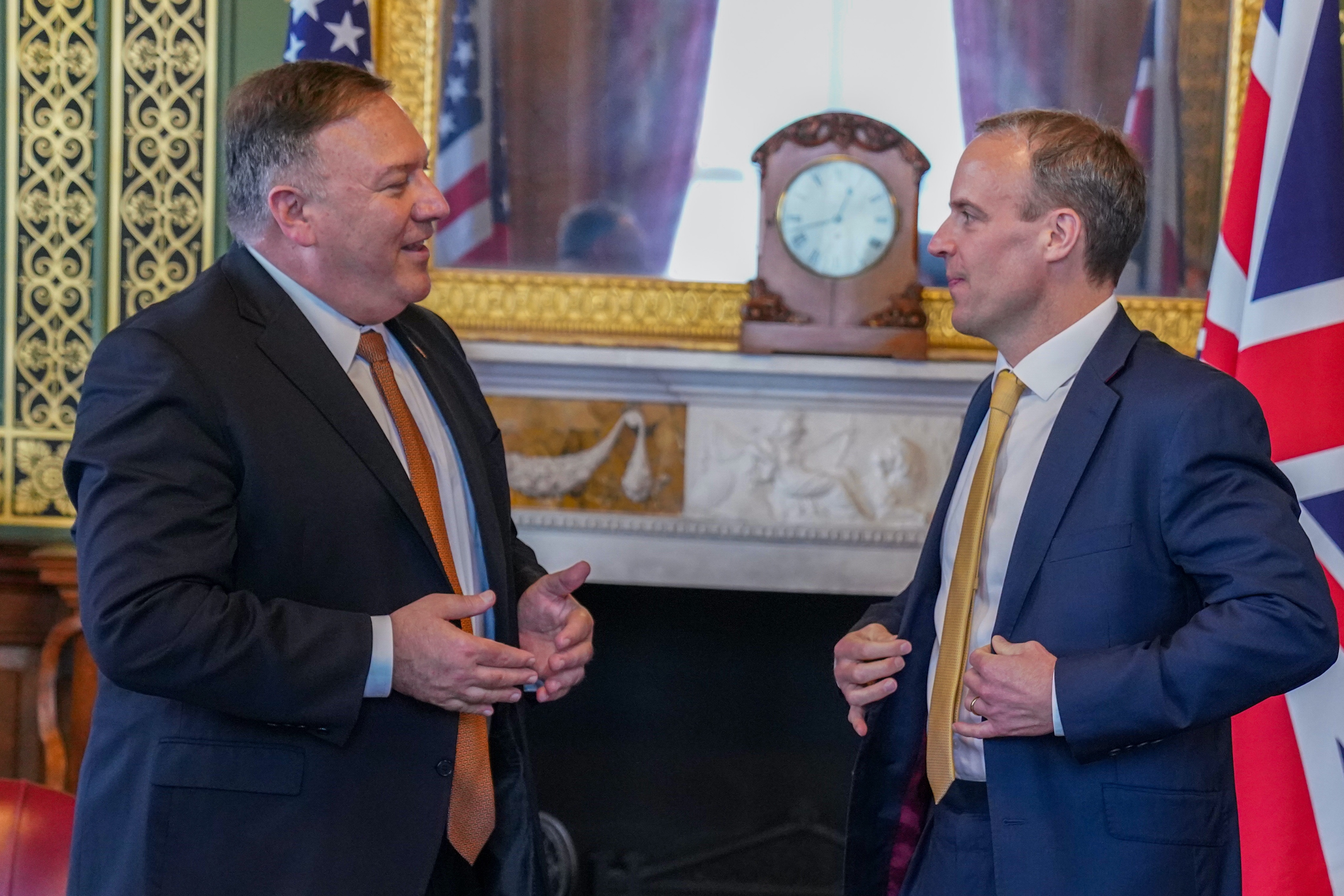 但矛盾的是,當記者問及英國最近的行動是不是在美國的施壓下做出的時,蓬佩奧和拉布都否認了。