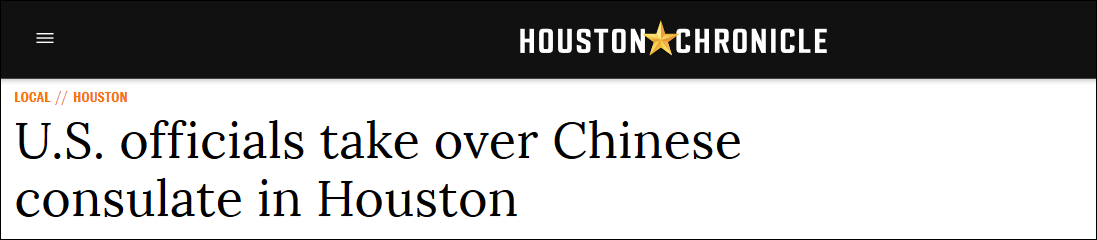 據當地媒體《休斯敦紀事報》24日報道稱,美方人員在當天下午“接管”了中國駐休斯敦總領館,這距離特朗普政府本週早些時候要求的最後期限不到1小時。