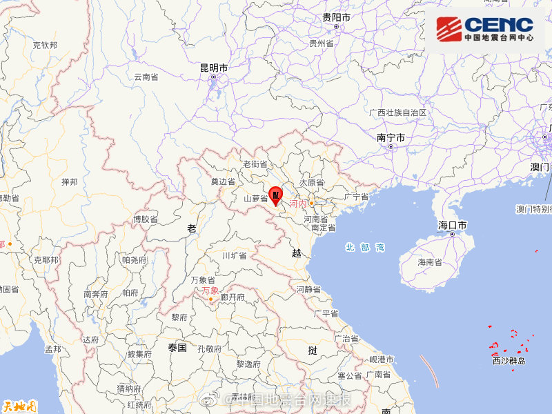 越南北部發生5.3級地震,震源深度10千米 2020-07-27 @中國地震台網速報 7月27日消息:中國地震台網正式測定:07月27日13時14分在越南(北緯20.90度,東經104.70度)發生5.3級地震,震源深度10千米。