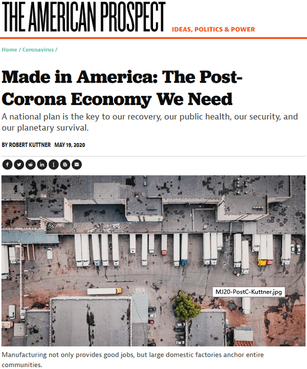羅伯特·庫特納:在後疫情時代,我們需要“美國製造”(一)
