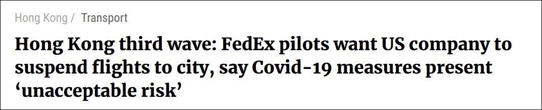《南華早報》:聯邦快遞飛行員稱香港的新冠防控措施會帶來“不可接受的風險”,因此想讓公司暫停飛往香港的航班