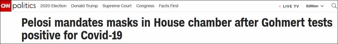多家美媒的報道均指出,眾議院這項口罩強制令的出台,可能和此前一名眾議員確認被感染有一定的關係。