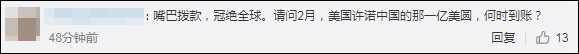 有網友則替美國自顧不暇的國內疫情着想,建議這筆錢“還是留着自己用吧”,以及“把你們每天幾萬的病例降下來,就是對全人類抗疫的貢獻”。
