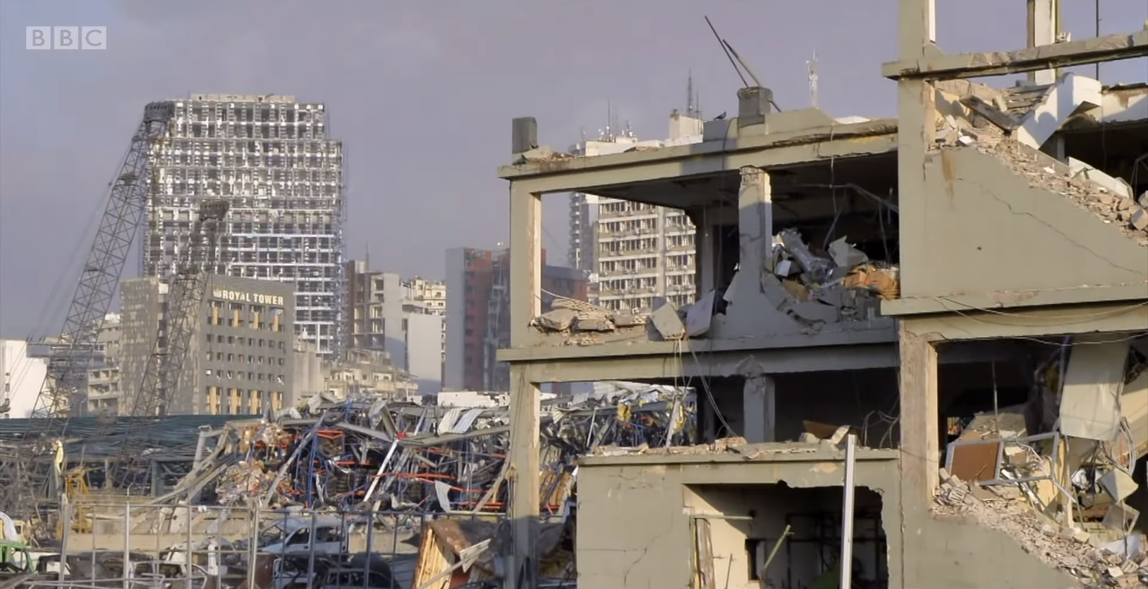 黎巴嫩首都遭受爆炸後的街景 該圖為BBC視頻截圖