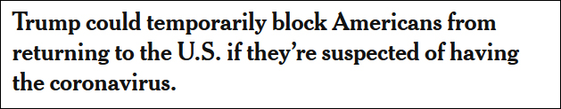 紐約時報:白宮考慮禁止“可能接觸或感染新冠”的海外居民回國