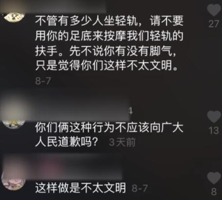 這兩段視頻發佈後,引發了關注,不少網友在評論區給發佈者留言,指出該行為並不文明。