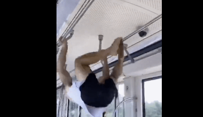 據新京報報道,8月7日,一外國男子在短視頻平台發佈了兩段視頻,一段視頻中,男子在地鐵扶手上來回攀爬並光腳蹬在扶手上,背景音樂帶有“我是孫悟空”的獨白。