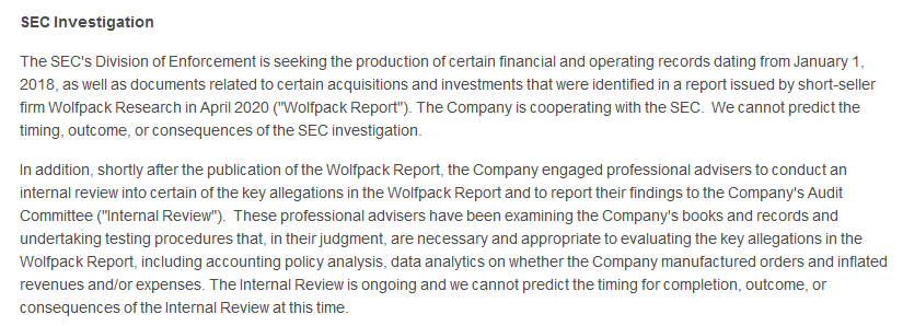 據財報揭露的信息顯示,SEC要求愛奇藝提供2018年1月至今的財務記錄,並提及了今年4月Wolfpack Research發佈的質疑報告。