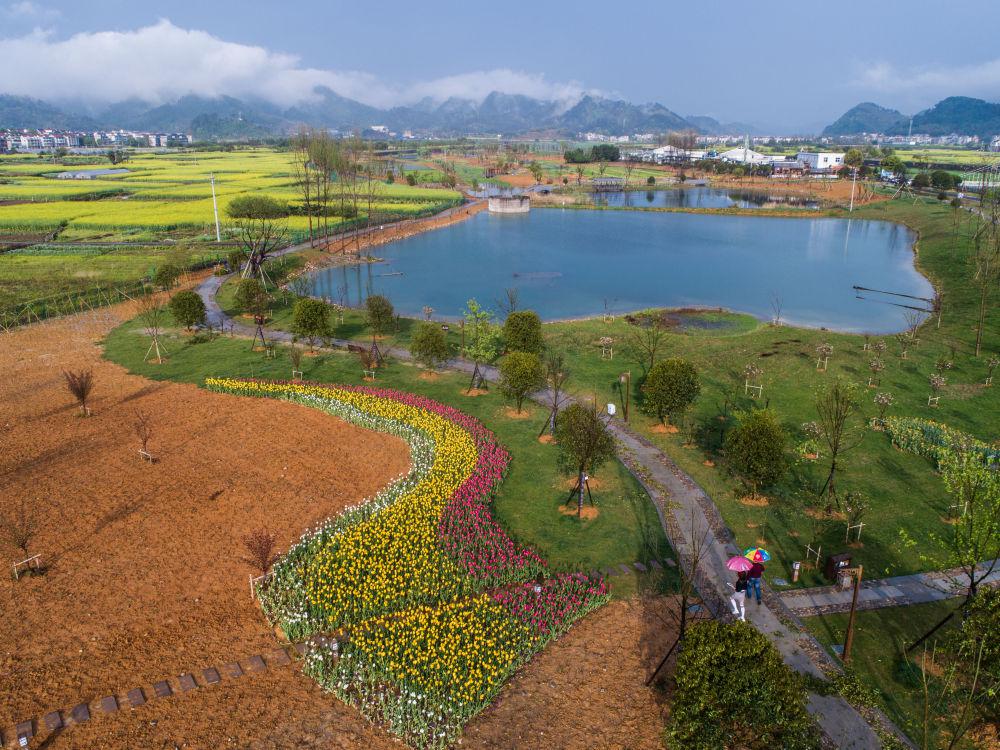 餘村地處浙江省湖州市安吉縣天荒坪鎮,2005 年前這裏水泥廠、採石場遍佈,漫天灰塵迷人眼。今天,餘村已成為人氣很旺的 4A 級景區。被拆遷的水泥廠舊址復墾後變身五彩田園,村裏流轉的 500 多畝土地成為油菜花田、荷花藕塘,四季皆有景。