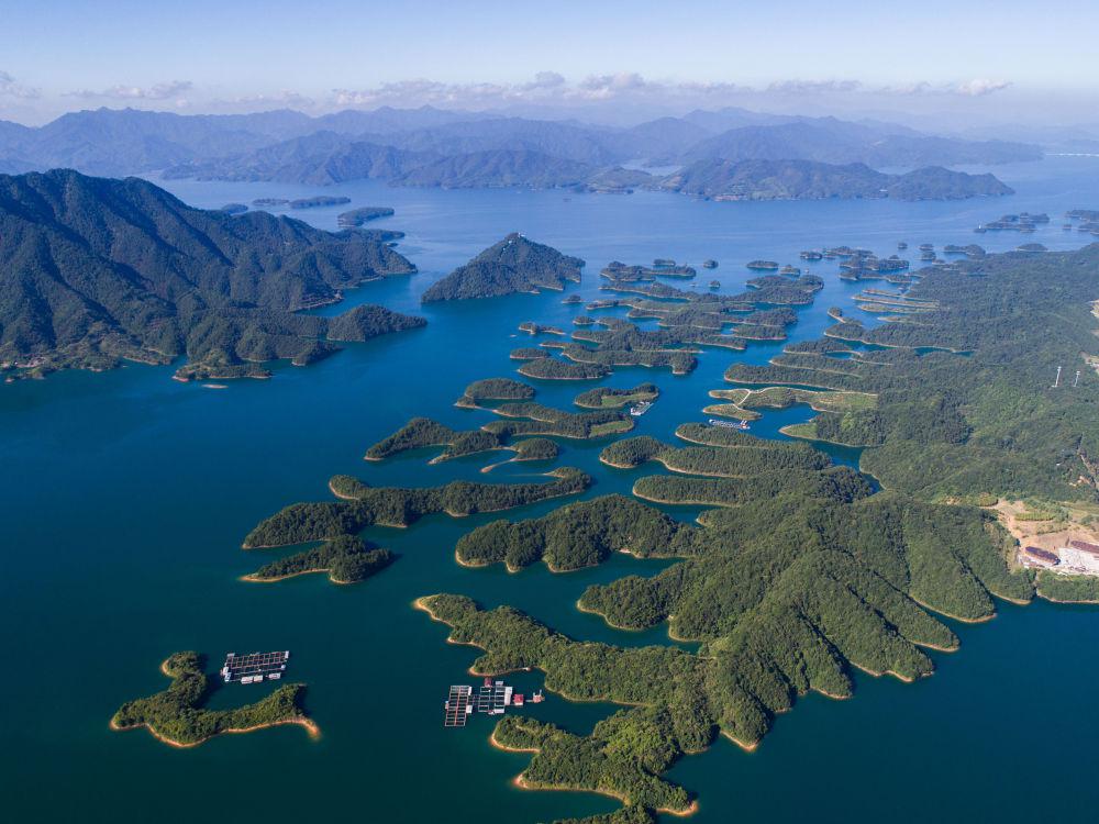 空中俯瞰浙江省淳安縣千島湖(2018 年 7 月 18 日攝,無人機照片)。新華社記者 徐昱 攝