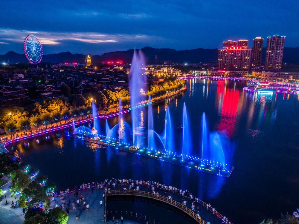 浙江東陽花園村夜景(2018 年 6 月 28 日攝,無人機照片)。新華社記者 徐昱 攝
