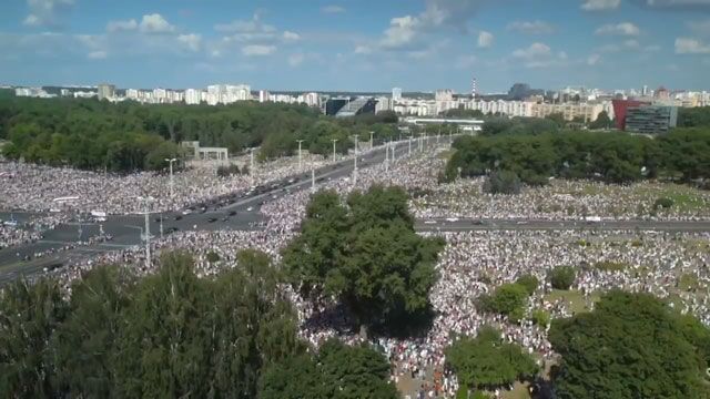 16日,在反對派的煽動下,白俄羅斯的抗議迎來一輪高潮。法新社稱,在首都明斯克,當天示威者數量約有10萬人。路透社現場記者則估計稱,示威者的數量可達到20萬左右。