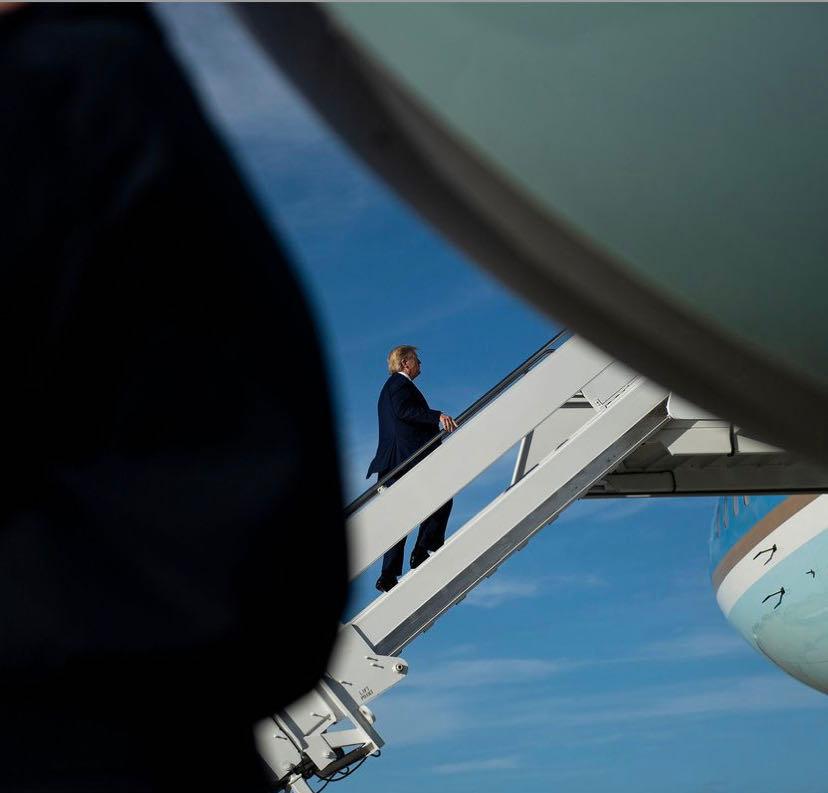 △特朗普登上飛機舷梯(圖片來源:法新社)