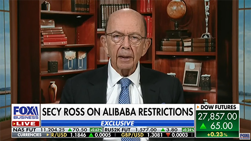 特朗普在15日的新聞發佈會上被問及“是否會考慮禁止其他中國企業,比如阿里巴巴?”當時特朗普只回答:“嗯,是的。”福克斯主持人就此向羅斯提問,美國商務部當前是否有針對阿里巴巴的進一步計劃。