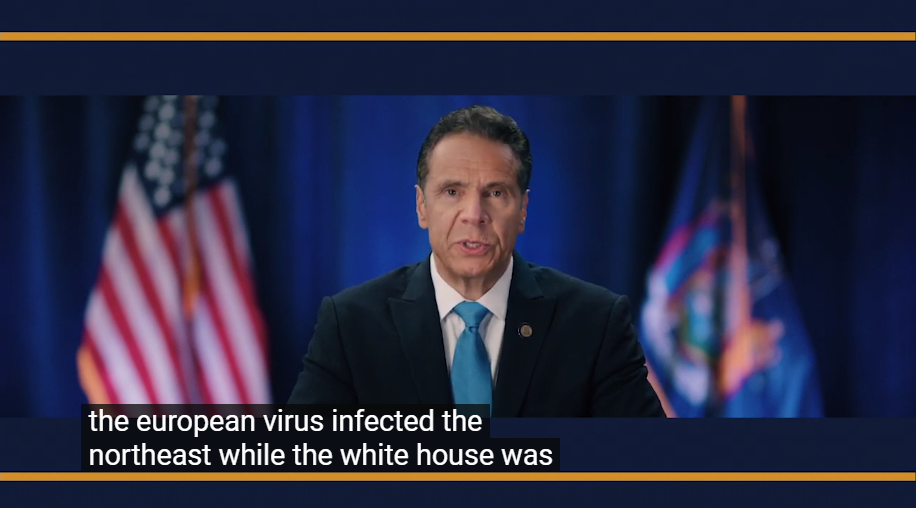 科莫形容,“歐洲病毒”感染了美國東北部,而白宮還沉迷於甩鍋中國