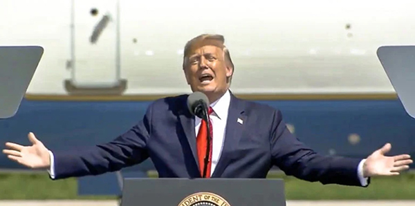 據美國《赫芬頓郵報》當地時間8月17日報道,當天在明尼蘇達州曼卡託的競選集會上,特朗普大肆吹噓自己的“經濟成就”,他稱在疫情暴發前他就已創造了世界歷史上“最好的經濟”。