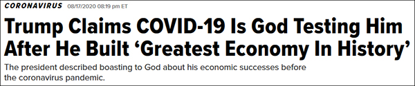特朗普:上帝在考驗我,要我再創經濟奇蹟