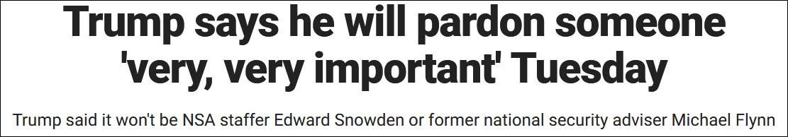 特朗普不願透露到底是誰,也未透露更多具體細節,不過他同時表示,被赦免的人不會是前美國國家安全局防務承包商僱員愛德華·斯諾登(Edward Snowden)和前美國國家安全顧問邁克爾·弗林(Michael Flynn)。