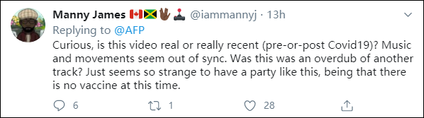 “這個視頻是真的?是最近的視頻(疫情之前還是之後的)?音樂和動作似乎不同步。是重新添加的音頻?這樣的派對太奇怪了,畢竟現在還沒有疫苗。”立刻有外國網民發出一連串質疑。評論區眾説紛紜,有説是2019年的老視頻,有説是2018年的。