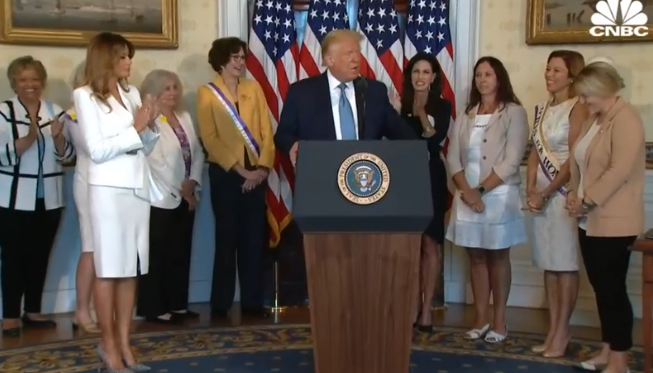 但在18日的慶祝活動上,特朗普不但簽署了一份紀念公告,還簡要回顧了女性投票權運動的歷史,讚揚“這是平等、正義的重大勝利,也是美國的重大勝利。”