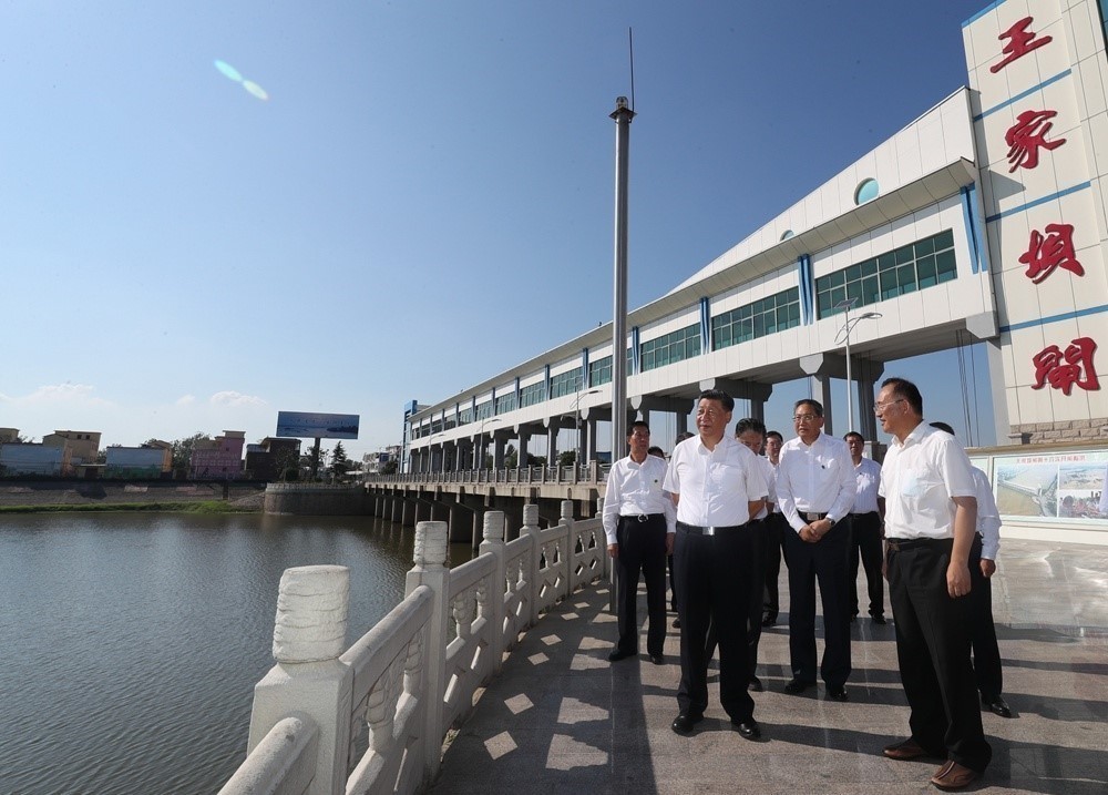 習近平總書記18日赴安徽考察調研。當天下午,他先後來到阜陽市阜南縣王家壩閘、紅亮箱包有限公司、蒙窪蓄洪區曹集鎮利民村西田坡莊台,察看淮河水情,走進田間地頭,瞭解當地防汛救災和災後恢復生產等情況,看望慰問受災羣眾。