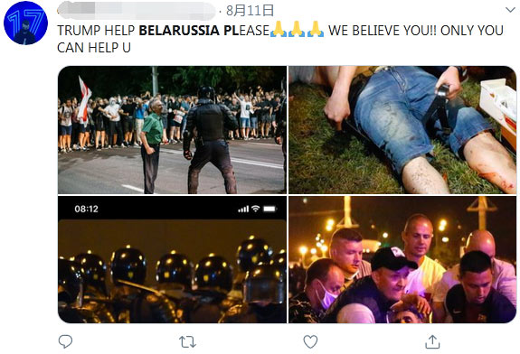 推特上的疑似“帶路黨”,在請求特朗普出手……畫風有點熟悉啊,圖片來源:推特截圖