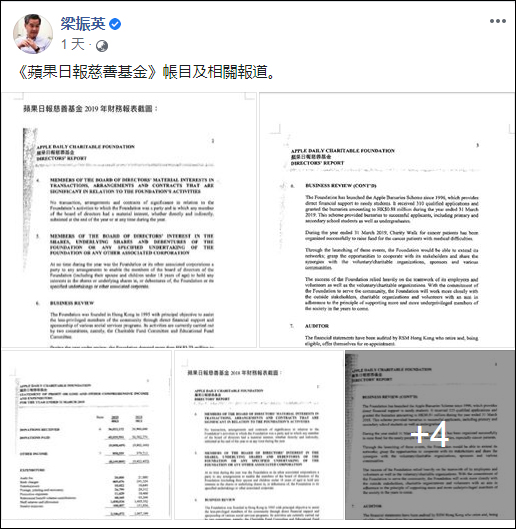 梁振英發布“蘋果日報慈善基金”相關財務文件 圖自:社交媒體