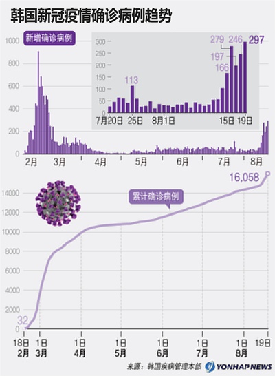 8月12日,韓國新一波新冠肺炎疫情以首爾“愛第一”教會為中心迅速擴散,韓國政府緊急提升首都圈三地(首爾、京畿、仁川)的防疫級別,並全面禁止該地區教會的線下活動。